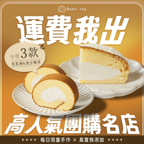 生乳捲免運、波士頓派免運、生日蛋糕免運、甜點宅配、蛋糕宅配、生乳捲宅配、生乳捲推薦、波士頓派推薦、甜點任選優惠、冷凍甜點、網購蛋糕、任選三件免運、Baker Yea葉豪手作蛋糕
