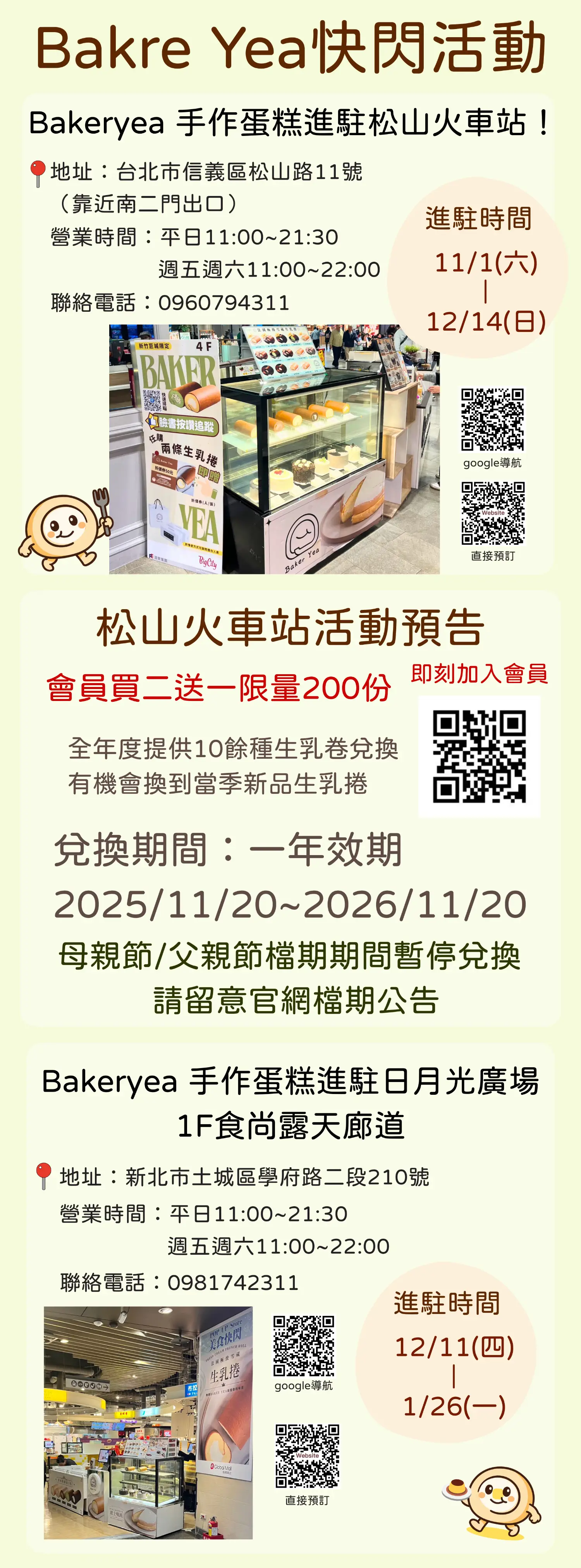快閃櫃位資訊, 生乳捲, 波士頓派, 生日蛋糕, 限時限量, 美味甜點