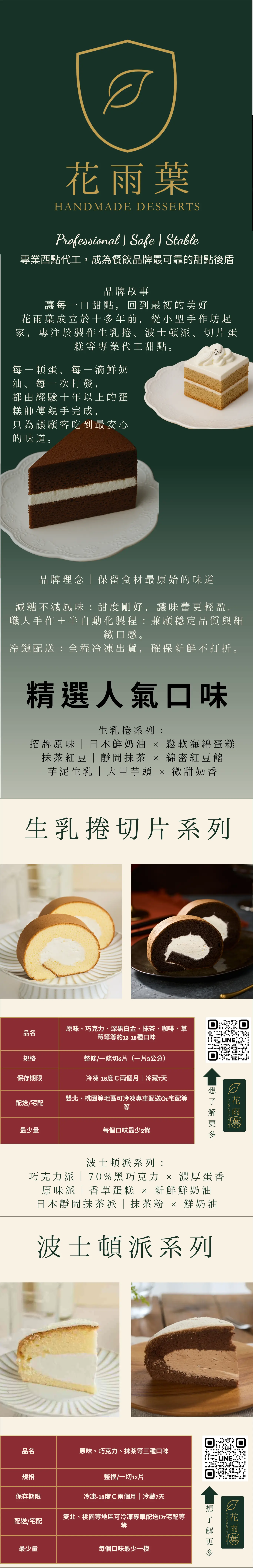 花雨葉|專業蛋糕西點代工工廠|生乳捲・波士頓派・切片蛋糕・手工餅乾批發合作