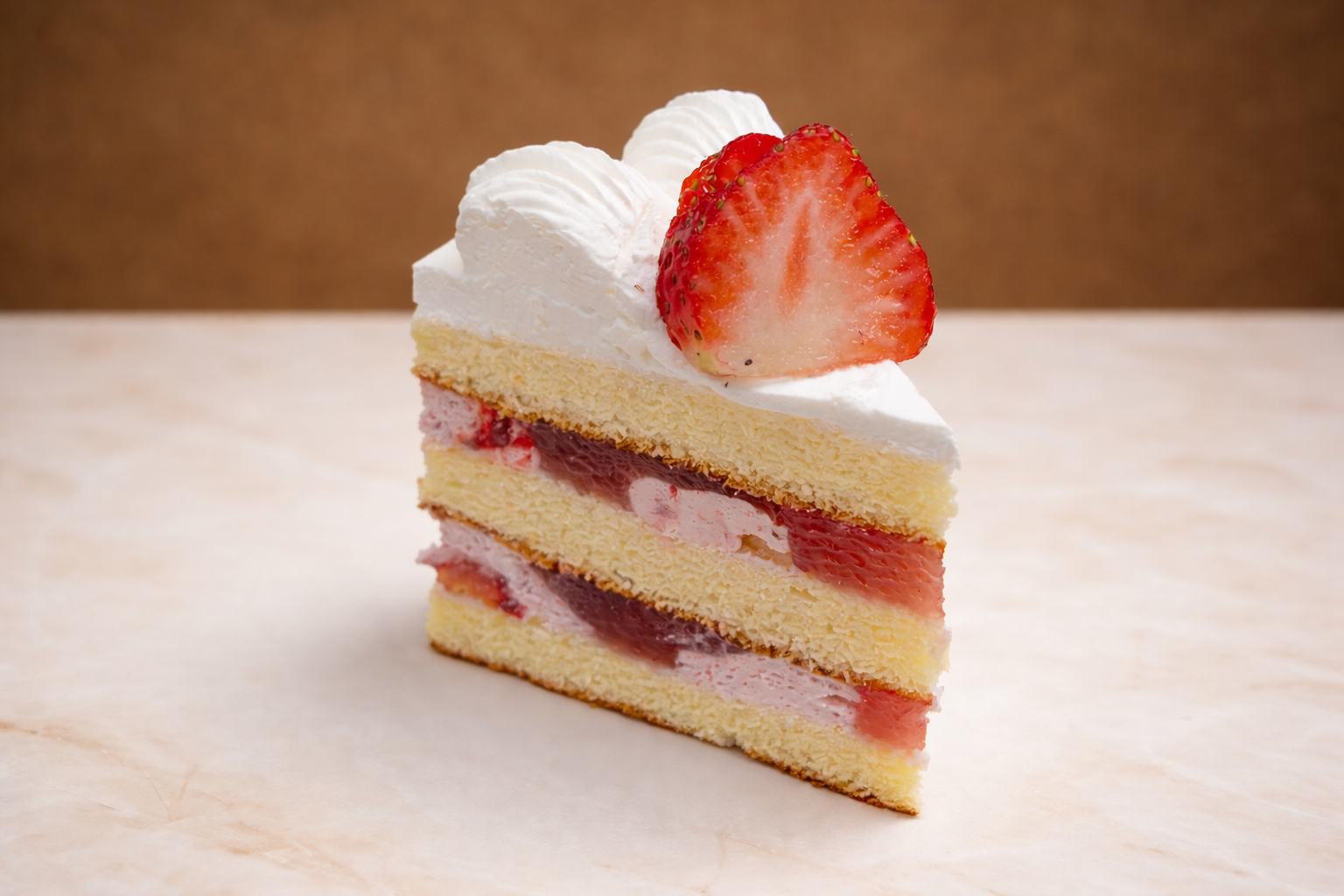 蛋糕體輕柔濕潤,入口即化,最後點綴苗栗大湖新鮮草莓,果香清新、層次分明。